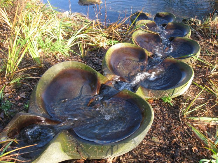 Wir empfehlen ihnen das gereinigte Abwasser über Flowforms abzuleiten. Zum Beispiel in einen Teich. Oder zurück in die Kläranlage als belüftete Abwasserkreislaufführung.